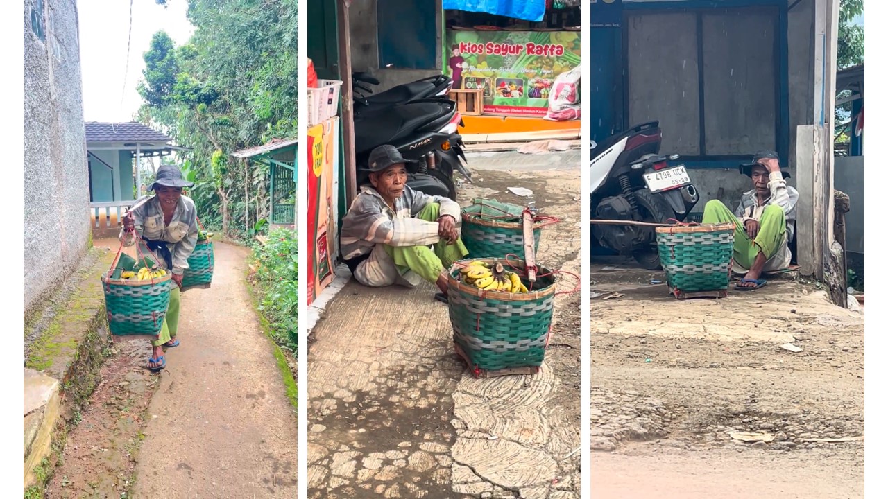 Abah Mami tetap memaksakan diri mengikat pinggangnya kuat-kuat demi bisa memikul beban pisang yang berat. Abah adalah tulang punggung terakhir di rumah. Ia tinggal bersama istrinya yang sudah renta, kakinya sering kambuh saat dingin, membuatnya susah bergerak.