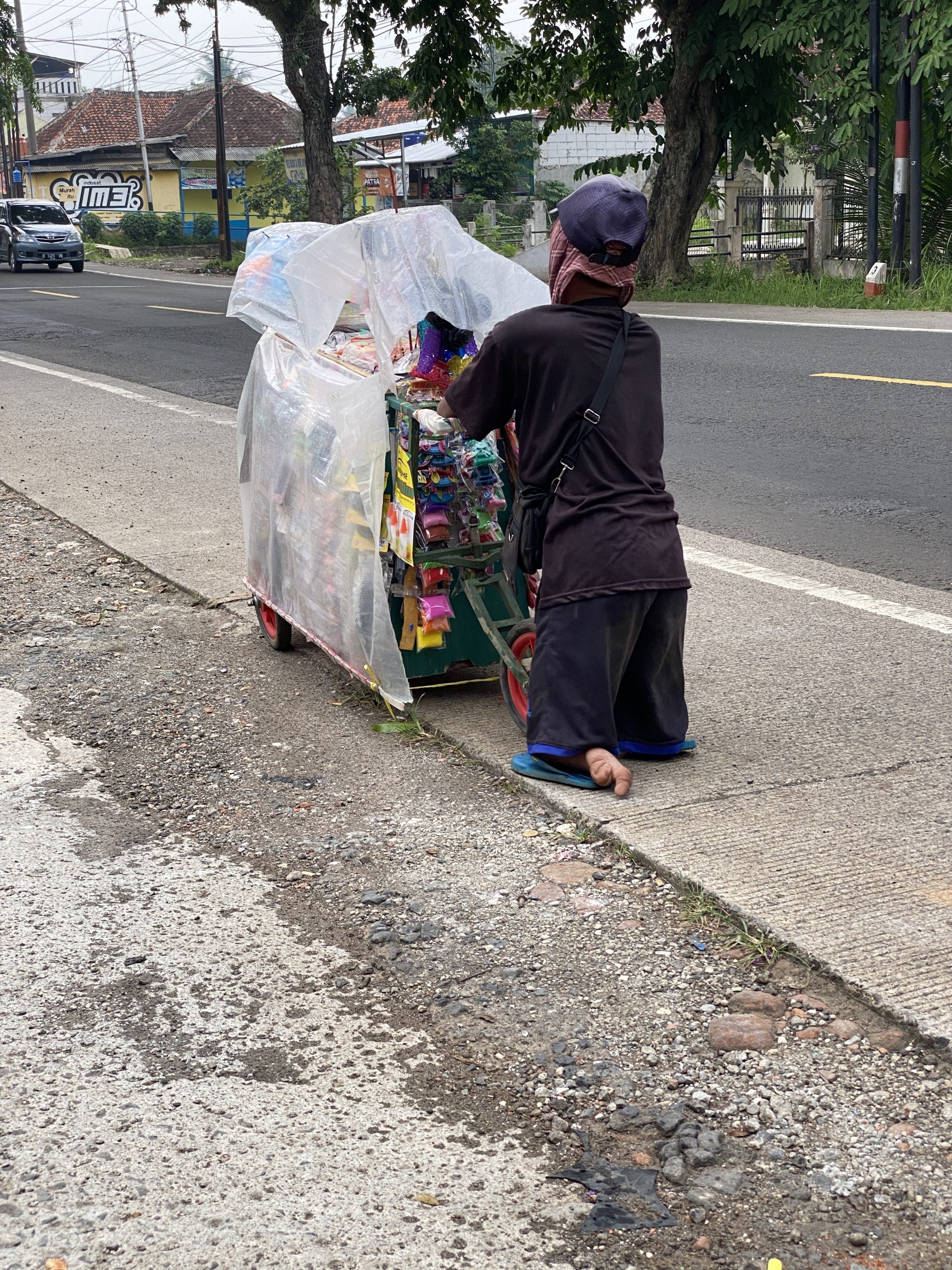 Dalam keterbatasan fisik yang luar biasa, Pak Cecep tak pernah menyerah dengan keadaan. Setiap hari, ia mendorong gerobak mainan sederhana dengan alat bantu yang dirancang khusus, berkeliling dari kampung ke kampung untuk menjajakan mainan anak-anak. Semua itu ia lakukan demi satu tujuan: memberikan kehidupan yang layak bagi sang anak, yang membutuhkan perhatian dan pengobatan rutin akibat kondisi saraf motoriknya yang terganggu sejak lahir.