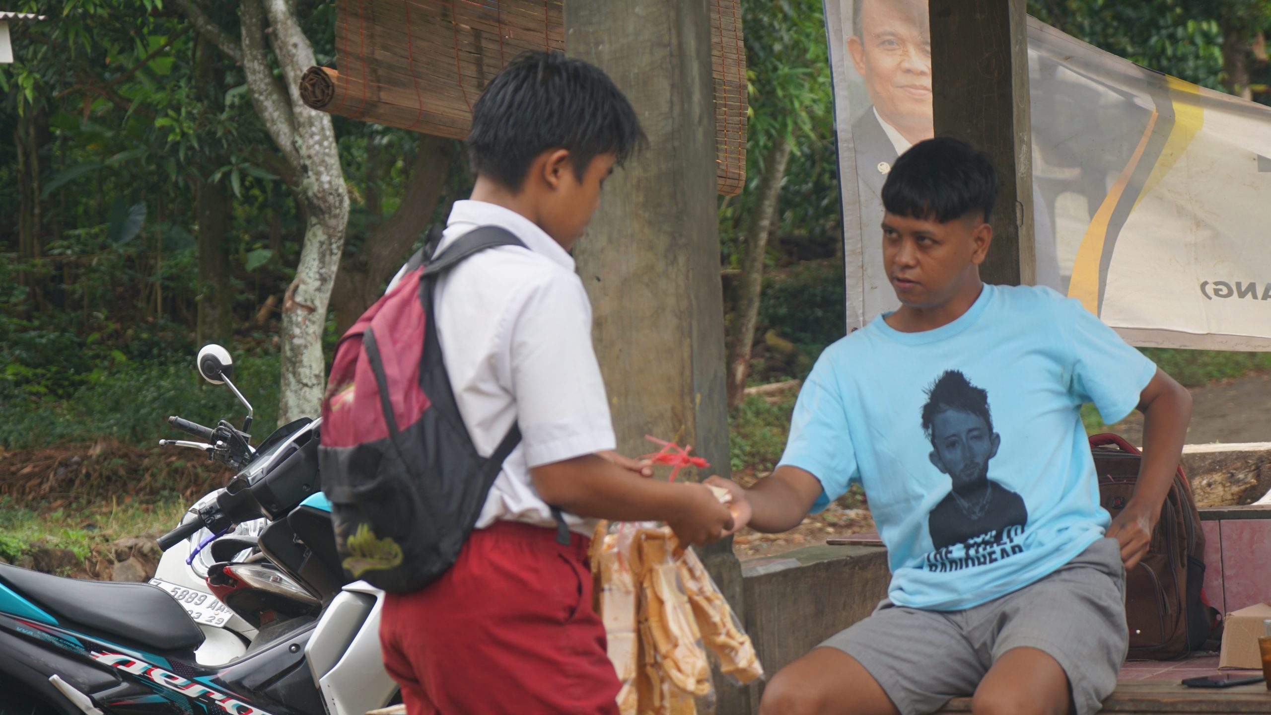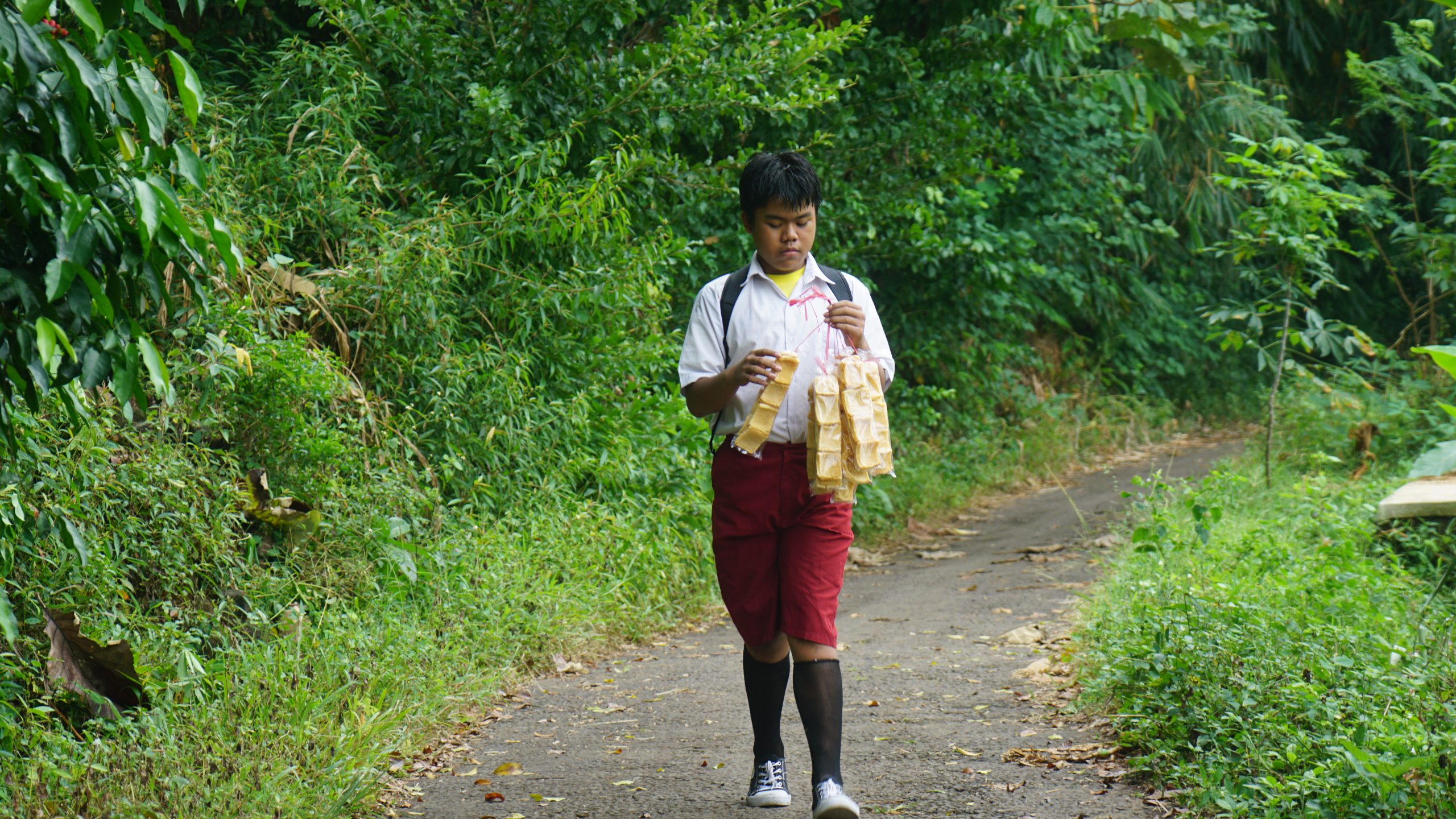 Berseragam Sekolah lengkap, Nauval keliling menjajakan kerupuknya. Berharap banyak pembeli agar Nenek Bisa dibawa berobat