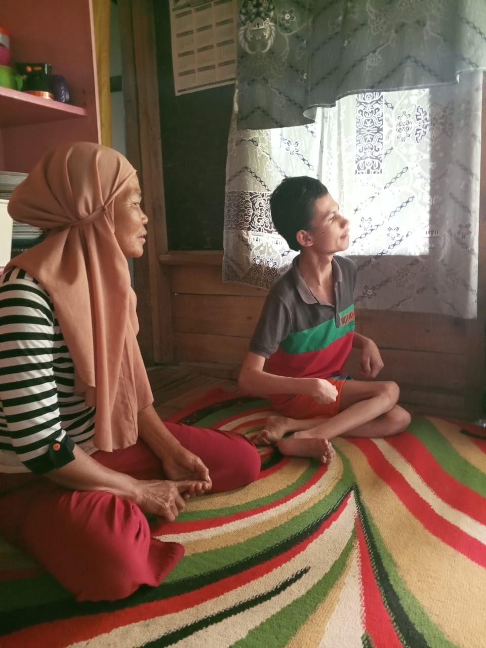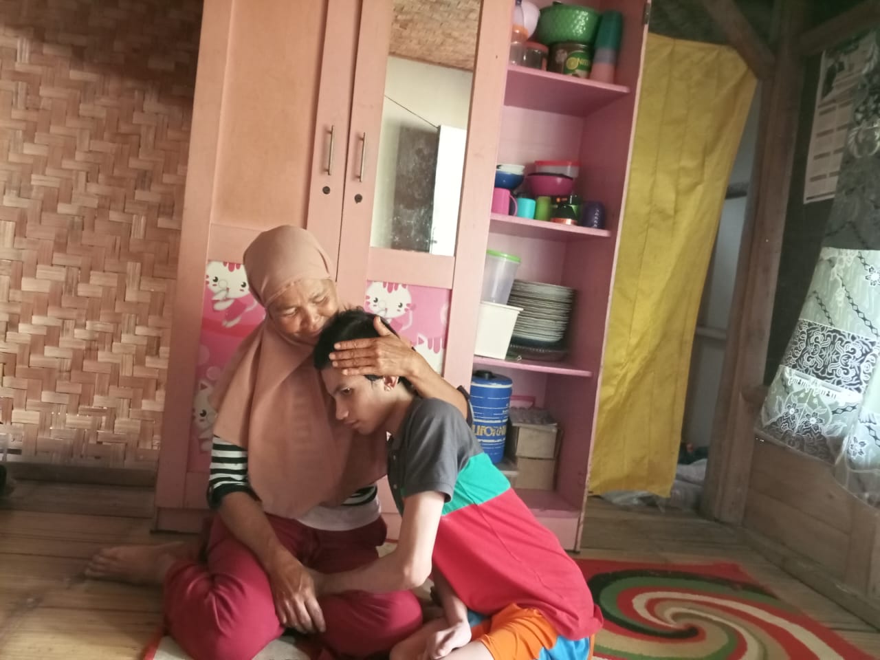 Punggung bu Kokom (52) yang sudah tak lagi muda itu nampak tergopoh menggendong seorang remaja laki-laki. Riyan (19) yang sendari kecil telah lumpuh dan tak berdaya, nyaris semua kebutuhan Riyan harus di bantu oleh bu Kokom.