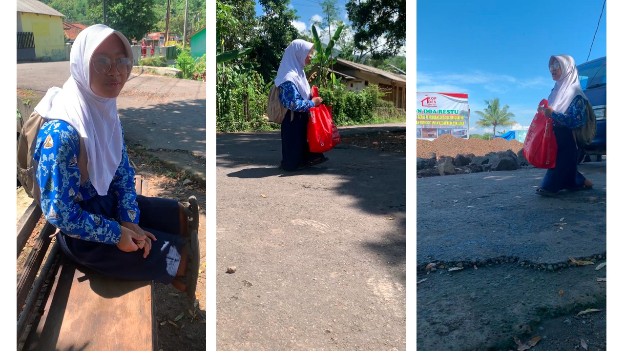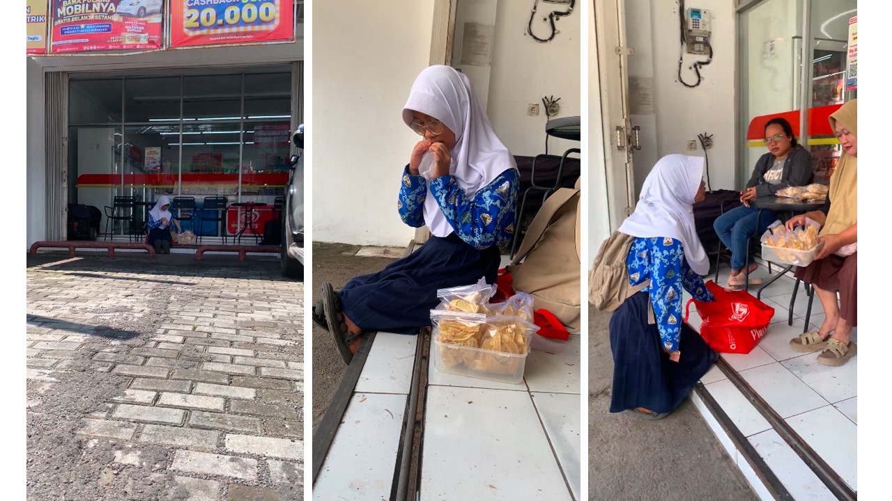 Dengan bertumpu pada lututnya, Tari melangkah menuju tempat-tempat ramai. Ia berjualan keliling, berharap hari itu ada rezeki untuk membeli obat dan membayar perawatan ibunya.