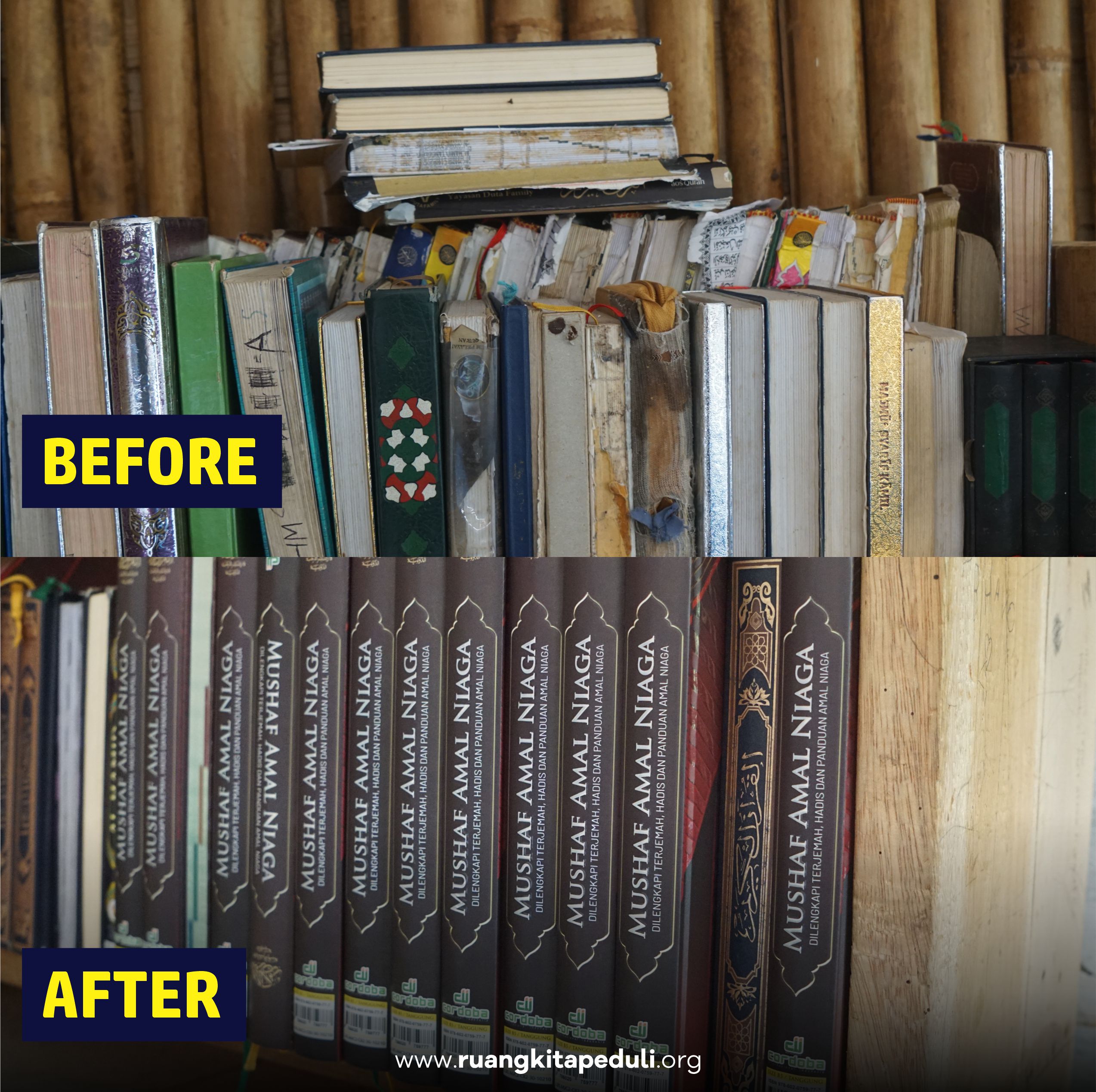 Alhamdulillaah, dengan adanya penyaluran Al-Qur'an ini para santri tidak perlu rebutan dan bisa belajar dengan giat.