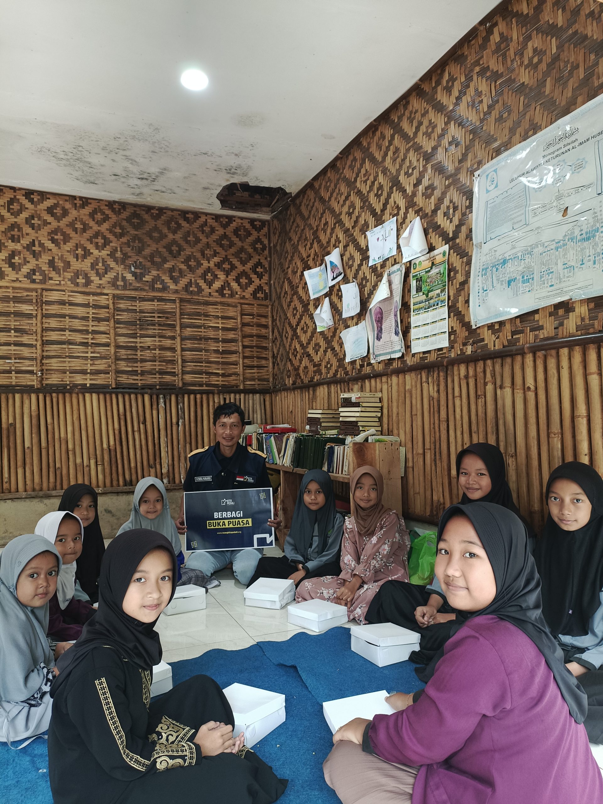 Pendistribusian dilakukan pada siang hari disaat para santri sedang belajar. Mereka begitu gembira menyambut kedatangan Tim Ruang Kita peduli yang membawa begitu banyak bahan pangan.