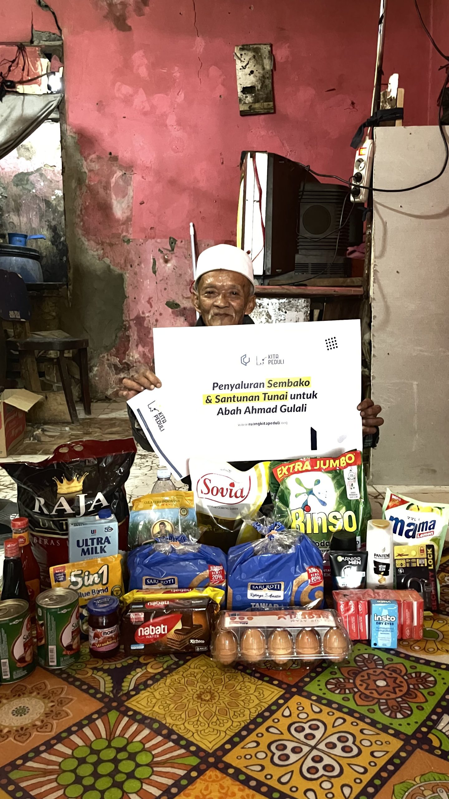 Mengetahui kisah perjuangan Abah Ahmad, Alhamdulillah kebaikan dari para kerabat peduli telah disalurkan dalam bentuk bantuan berupa sembako, santunan tunai, serta modal usaha untuk membuka warung kecil di rumahnya. Bantuan ini diharapkan menjadi jalan baru bagi Abah Ahmad agar dapat memperoleh penghasilan dengan cara yang lebih aman dan berkelanjutan, tanpa harus menantang bahaya di jalanan lagi.
