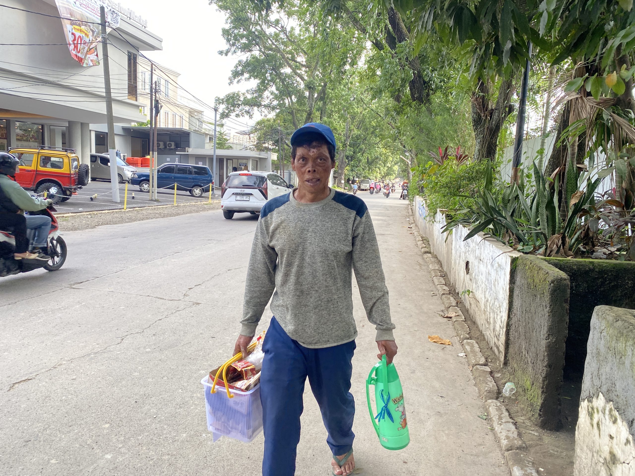 Sehari berjualan untung yang diperoleh rata-rata berkisar 20 ribu rupiah.Penghasilan ini beliau bagi untuk makan sekeluarga beserta biaya berobat sang istri yang sejak 5 tahun silam alami stroke.