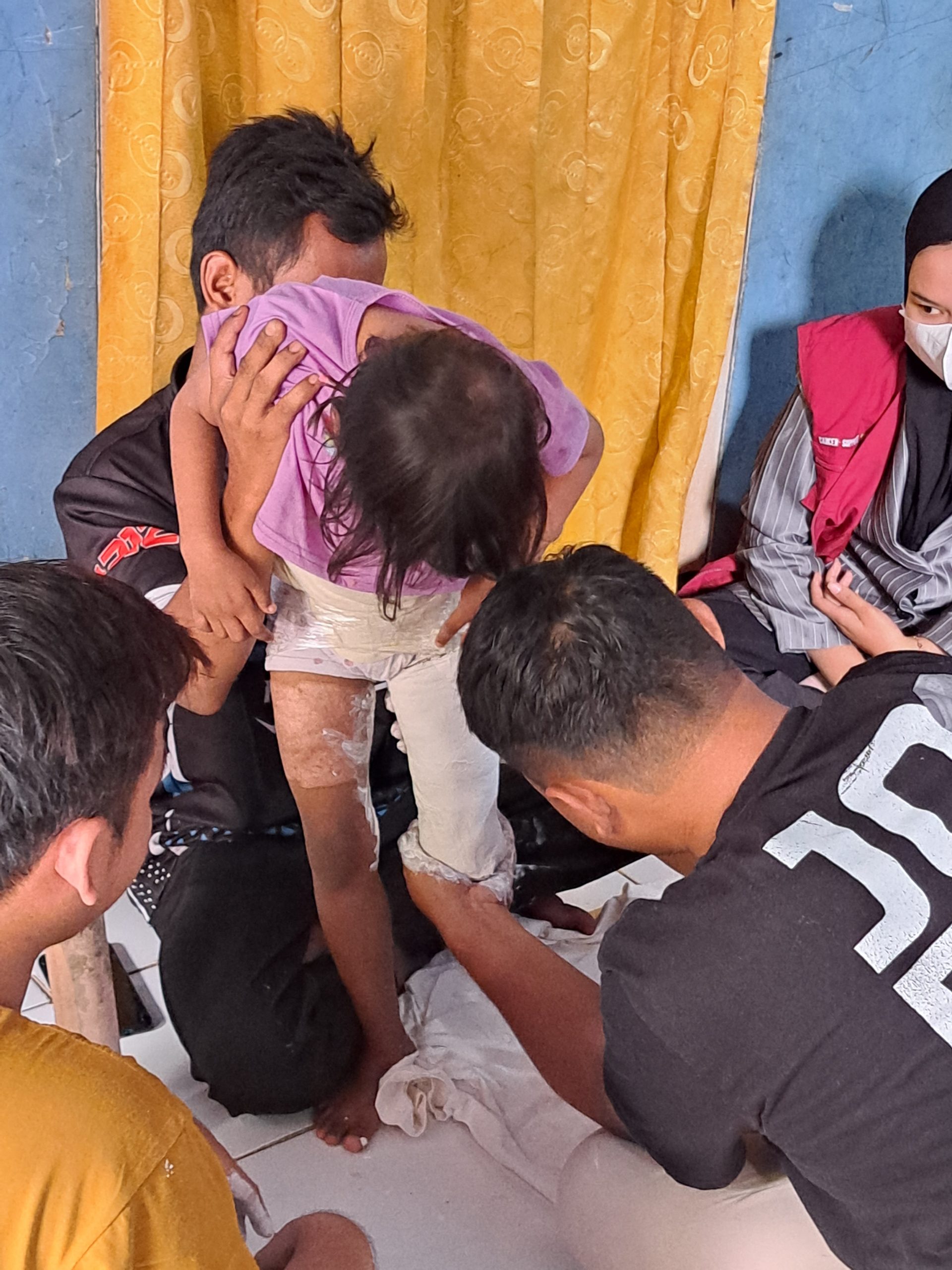 Meski kehilangan satu kakinya, semangat Raya untuk tetap bersekolah dan belajar tidak pernah padam. Senyum kecilnya menjadi pengingat bahwa harapan selalu ada, bahkan dalam kondisi tersulit sekalipun.