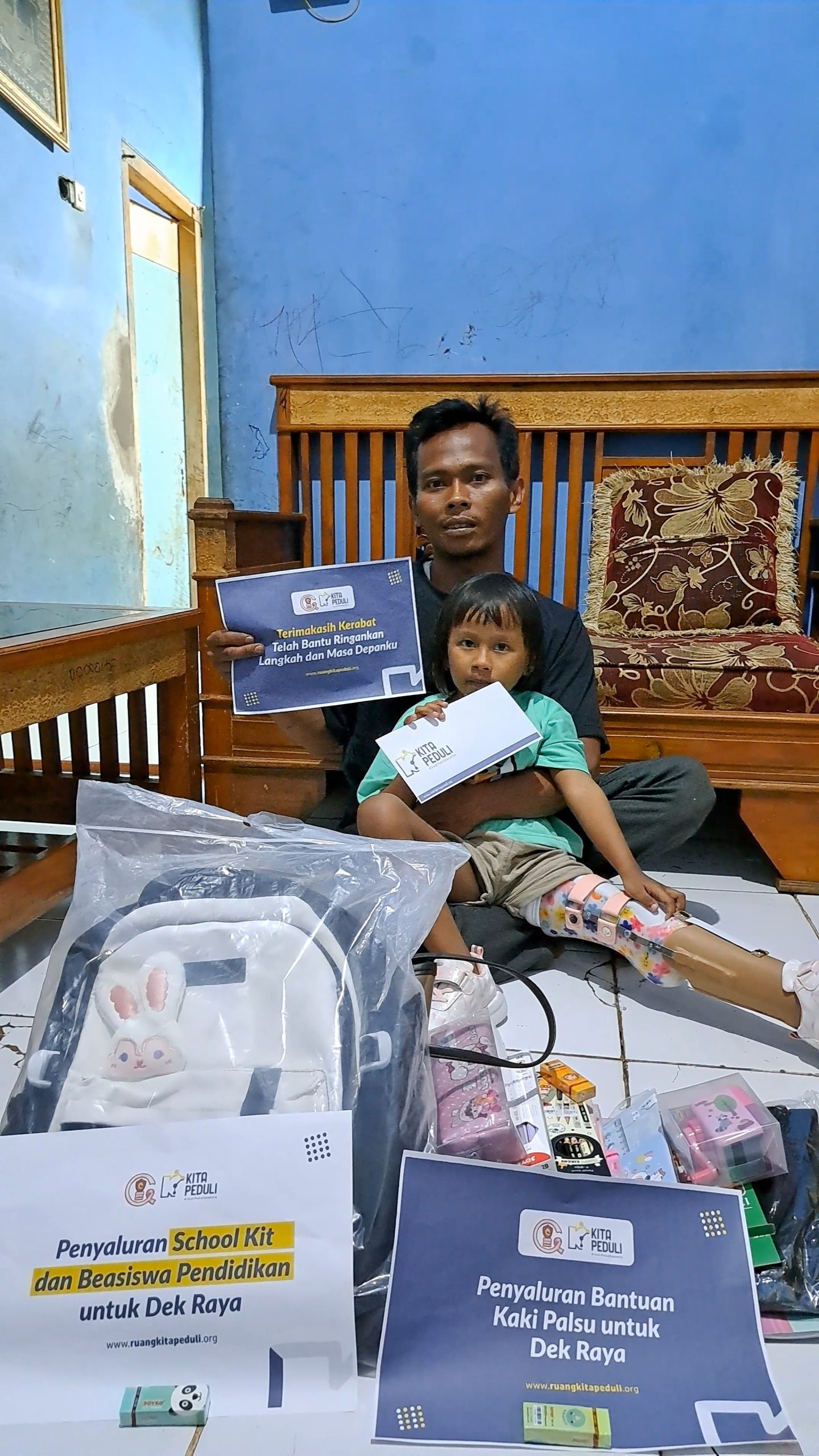 Di tengah keterbatasan itu, kabar bahagia datang ketika Raya menerima bantuan kaki palsu, beasiswa pendidikan, serta perlengkapan tulis dari #KerabatPeduli semua. Bantuan ini diharapkan dapat memulihkan semangat Raya untuk terus melanjutkan pendidikan dan tetap meraih cita-citanya meski dengan kondisi fisik yang berbeda.