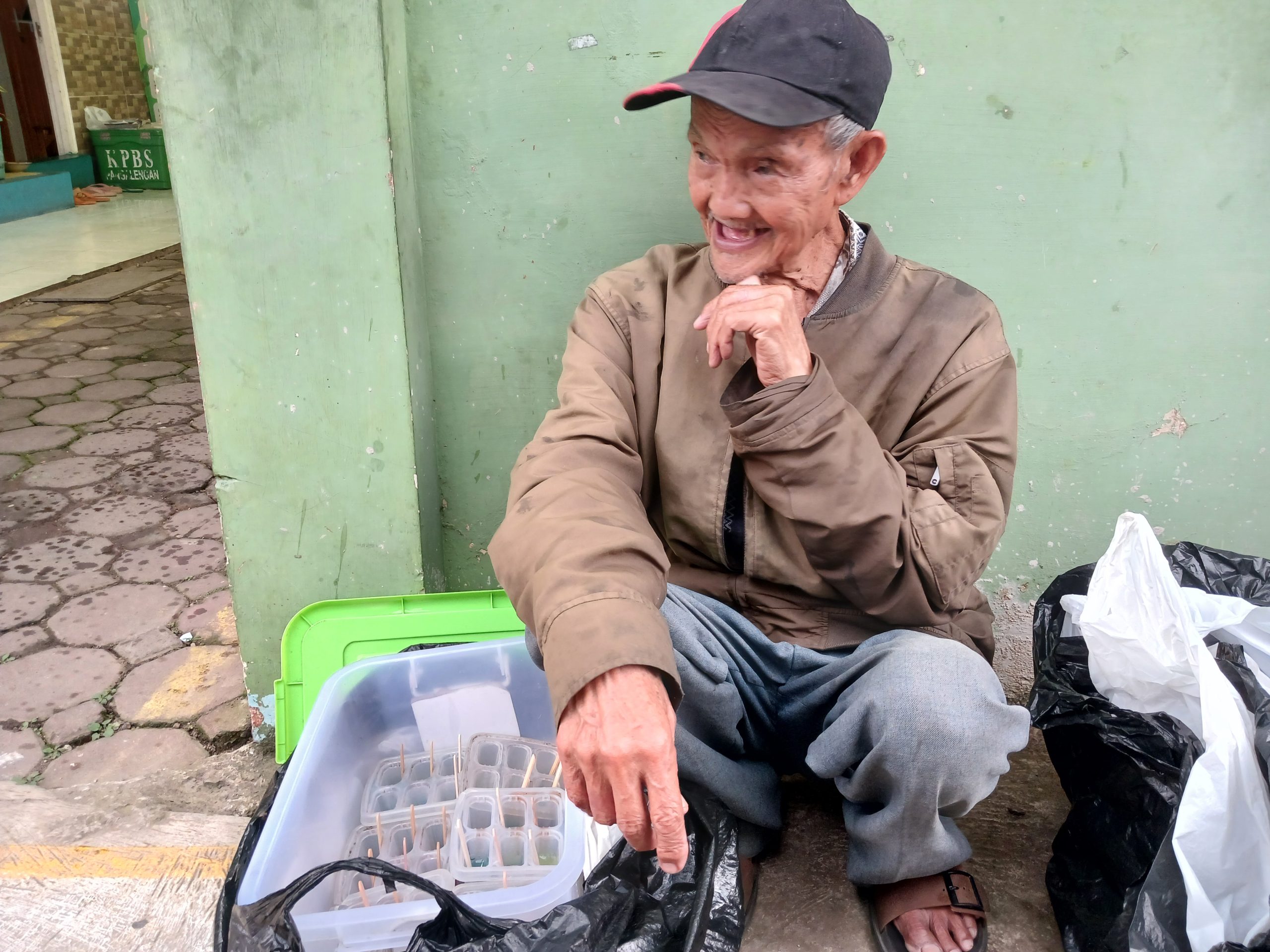 “Badannya terus bergetar saat berjalan, tak jarang ia kehilangan keseimbangan, tapi tangannya tetap menggenggam kresek jelly demi keluarga”