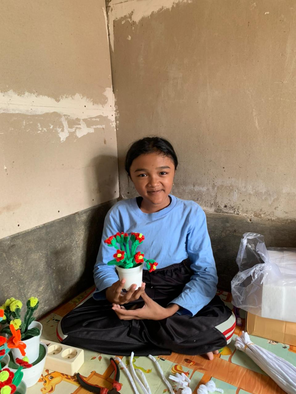 Setiap pulang sekolah, Meisya merangkai bunga kawat bulu hasil kreasinya sendiri. Ia belajar secara otodidak dari youtube dan menjualnya demi biaya hidup dan pengobatan sang ibu.