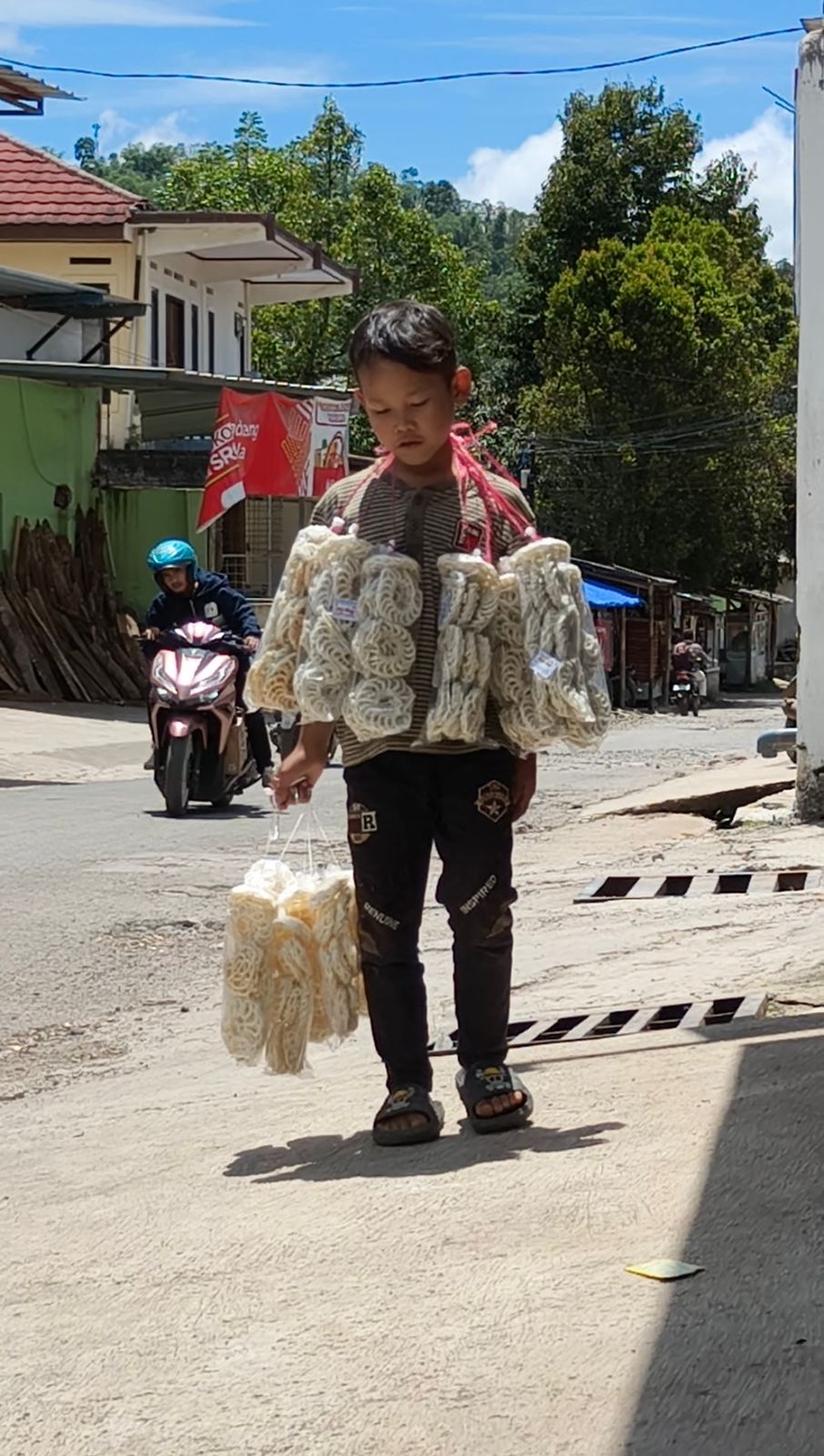 Setiap hari Radit berjalan dari satu tempat ke tempat lain. Kadang haus, kadang lapar, kakinya pegal, tapi ia jarang mengeluh. Ia hanya berharap dagangannya habis. Sayangnya, dunia tidak selalu baik buat Radit