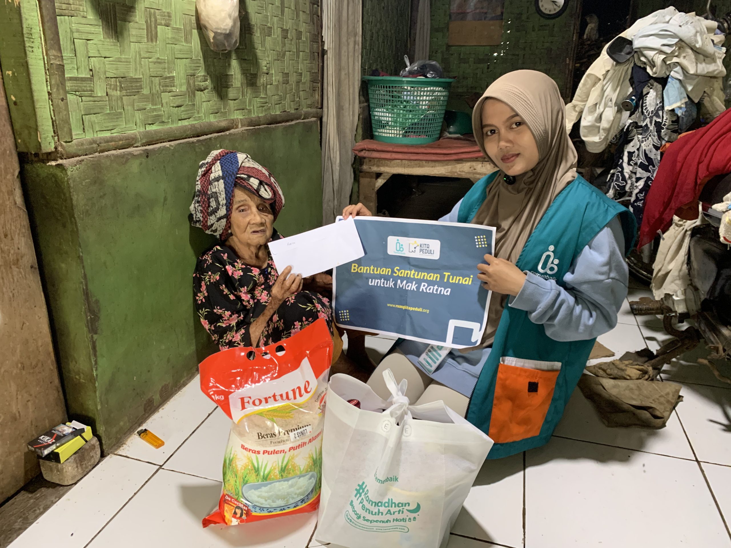Sebagai bentuk perhatian dan kasih sayang, telah disalurkan bantuan berupa santunan tunai dan paket sembako untuk Mak Ratna. Bantuan ini diharapkan dapat meringankan beban hidupnya, sekaligus memenuhi kebutuhan dasar sehari-hari yang selama ini sangat terbatas.