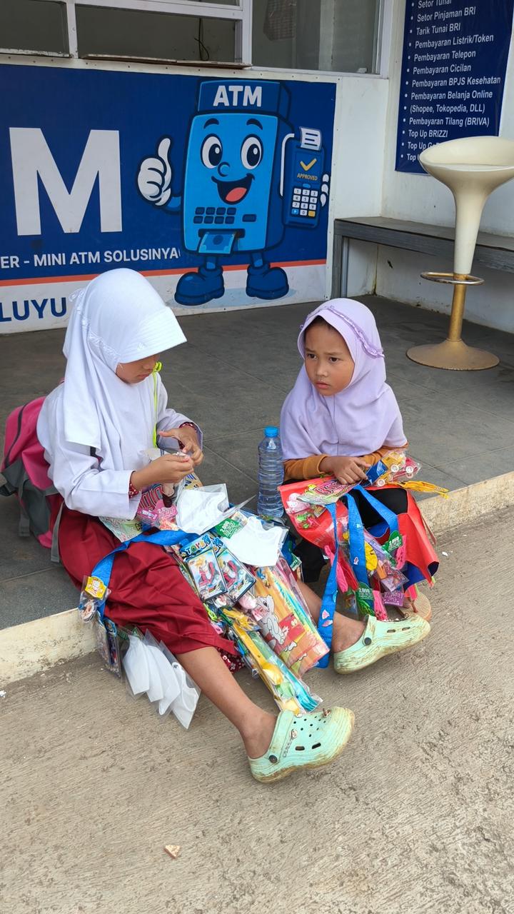 Siang itu, Aulia masih mengenakan seragam sekolah. Tas dibawa seadanya, ia berjalan bersama adiknya dari rumah ke rumah sambil menenteng mainan. Mainan yang mereka bawa bukan untuk bermain, melainkan untuk menyambung hidup
