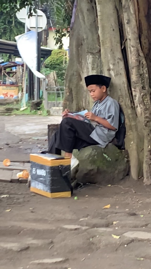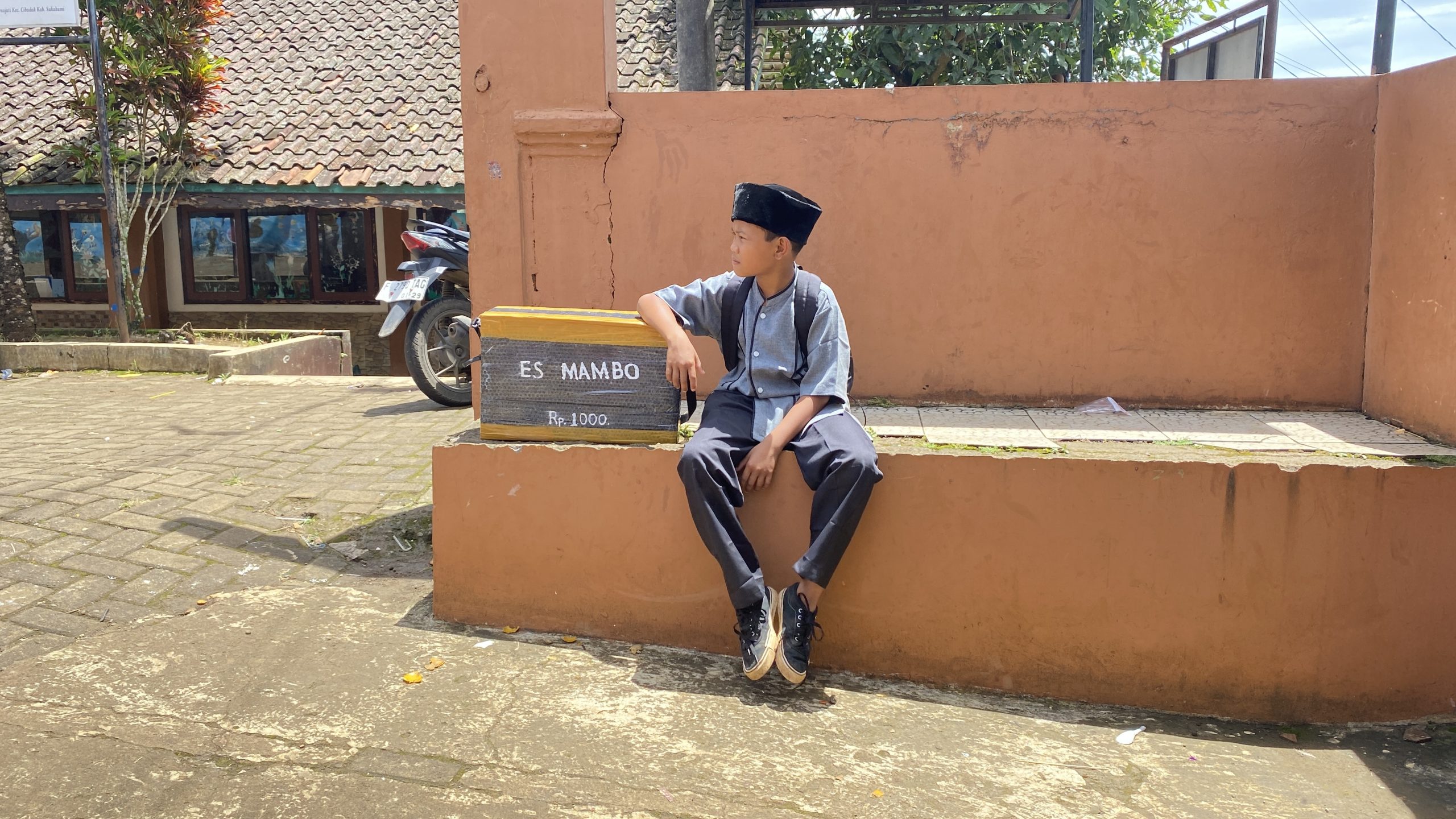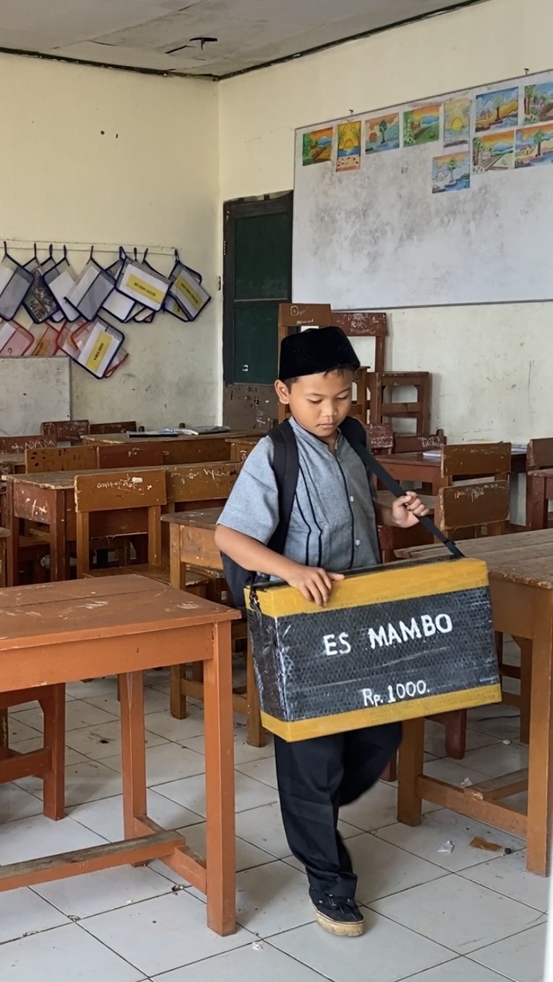 Saat jam istirahat tiba, Farel bukan hanya murid, tapi juga penjual kecil. Ia membawa termos berisi es mambo dan berjalan pelan menawarkan dagangannya, “Seribu ya…” katanya lirih. Dari seribu rupiah itulah ia menabung harapan agar tetap bisa membeli kebutuhan sekolahnya sendiri.